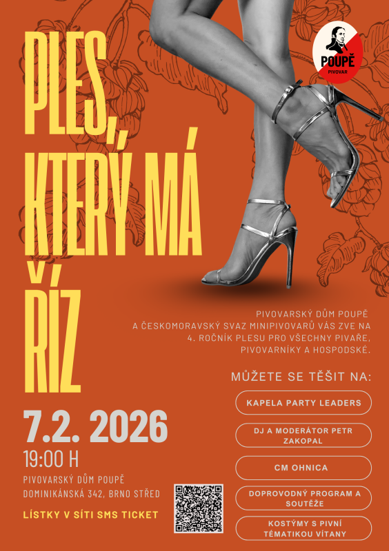 Pivovarský dům Poupě a Českomoravský svaz minipivovarů Vás srdečně zvou na 4. ročník plesu pro všechny pivaře, pivovarníky a hospodské. Akce se uskuteční 7. února 2026. Více informací naleznete na přiloženém letáku ZDE.